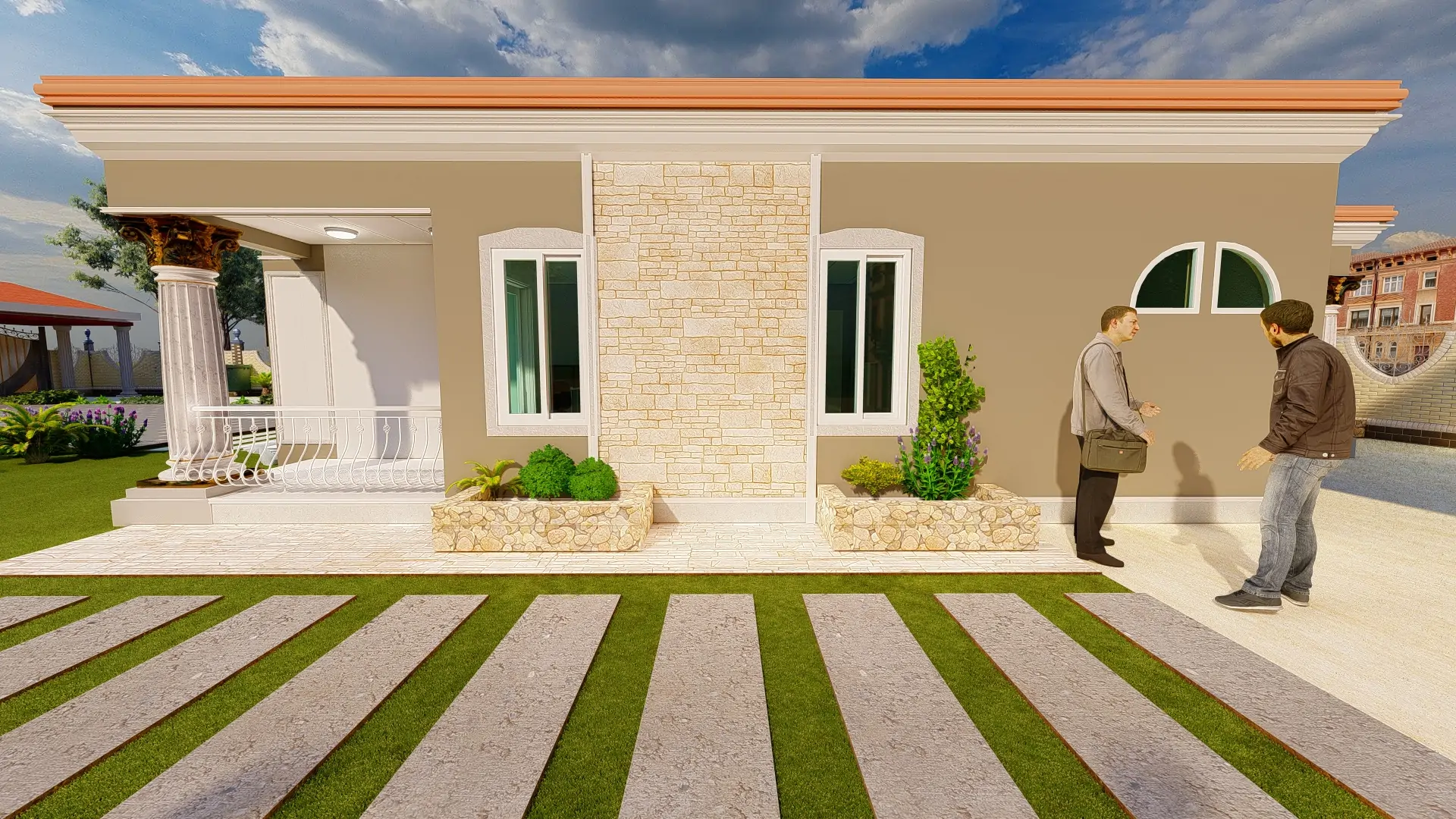 C'est un plan de 3 chambres un salon avec salle à manger ouvert sur salon a l'américaine idéal pour une famille 👪 monogame ou polygame. Il peut contenir sur une parcelle de 20m × 25m